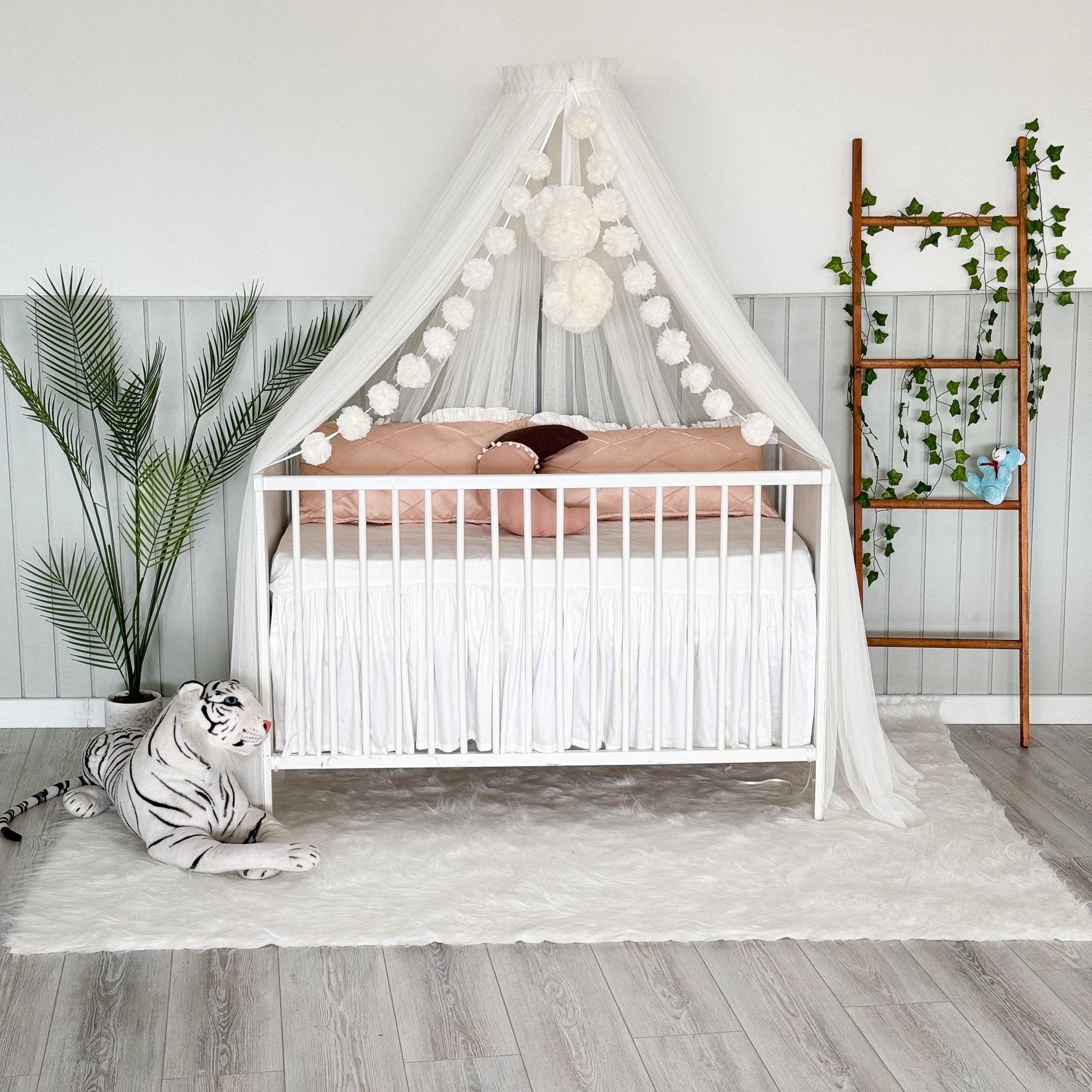 Tül cibinlikler, yumuşak kumaşları ve pastel tonlarıyla huzurlu bir ambiyans oluşturarak bebek odasına zarafet katar. Farklı renk ve tasarım seçenekleriyle odanın dekoruna uyum sağlar.