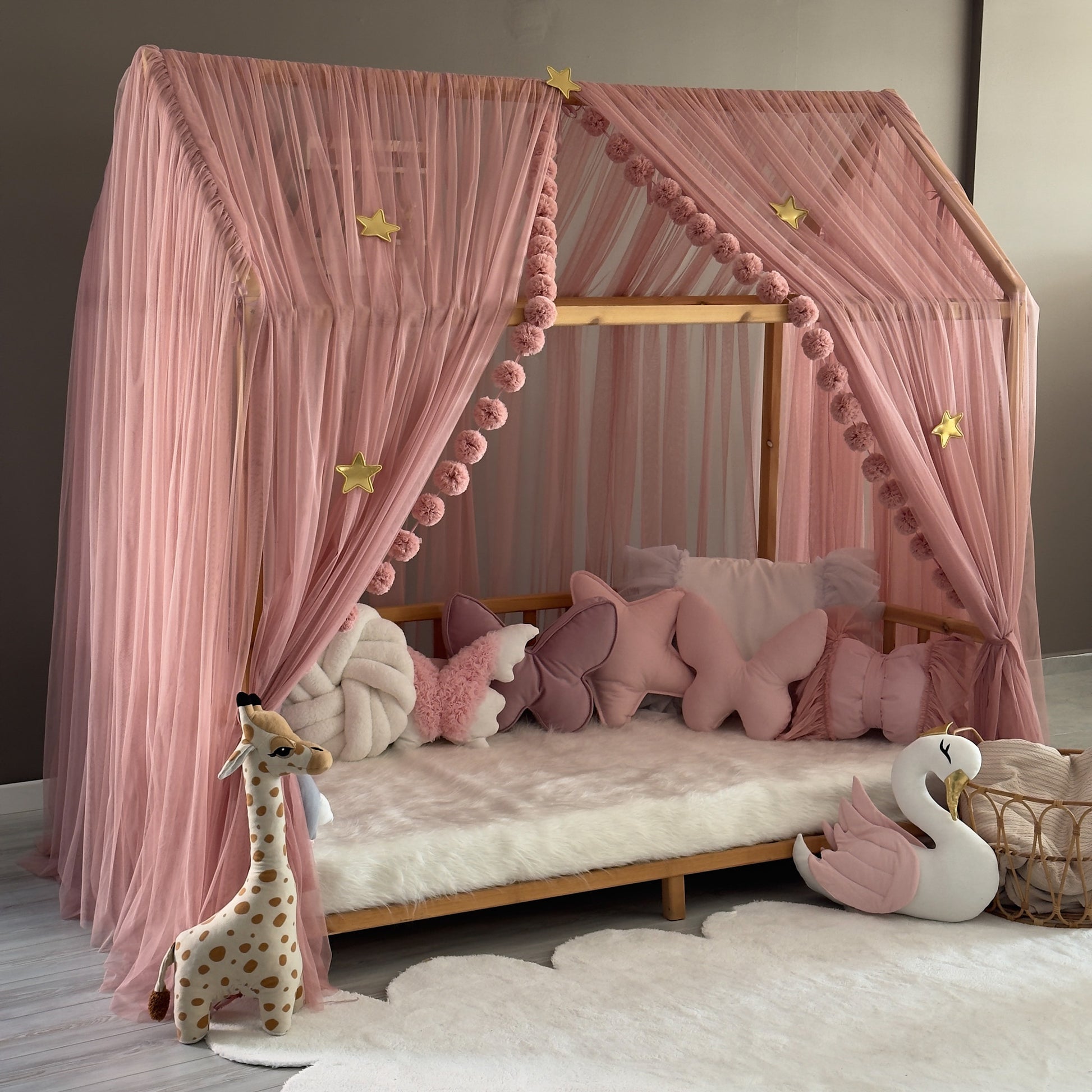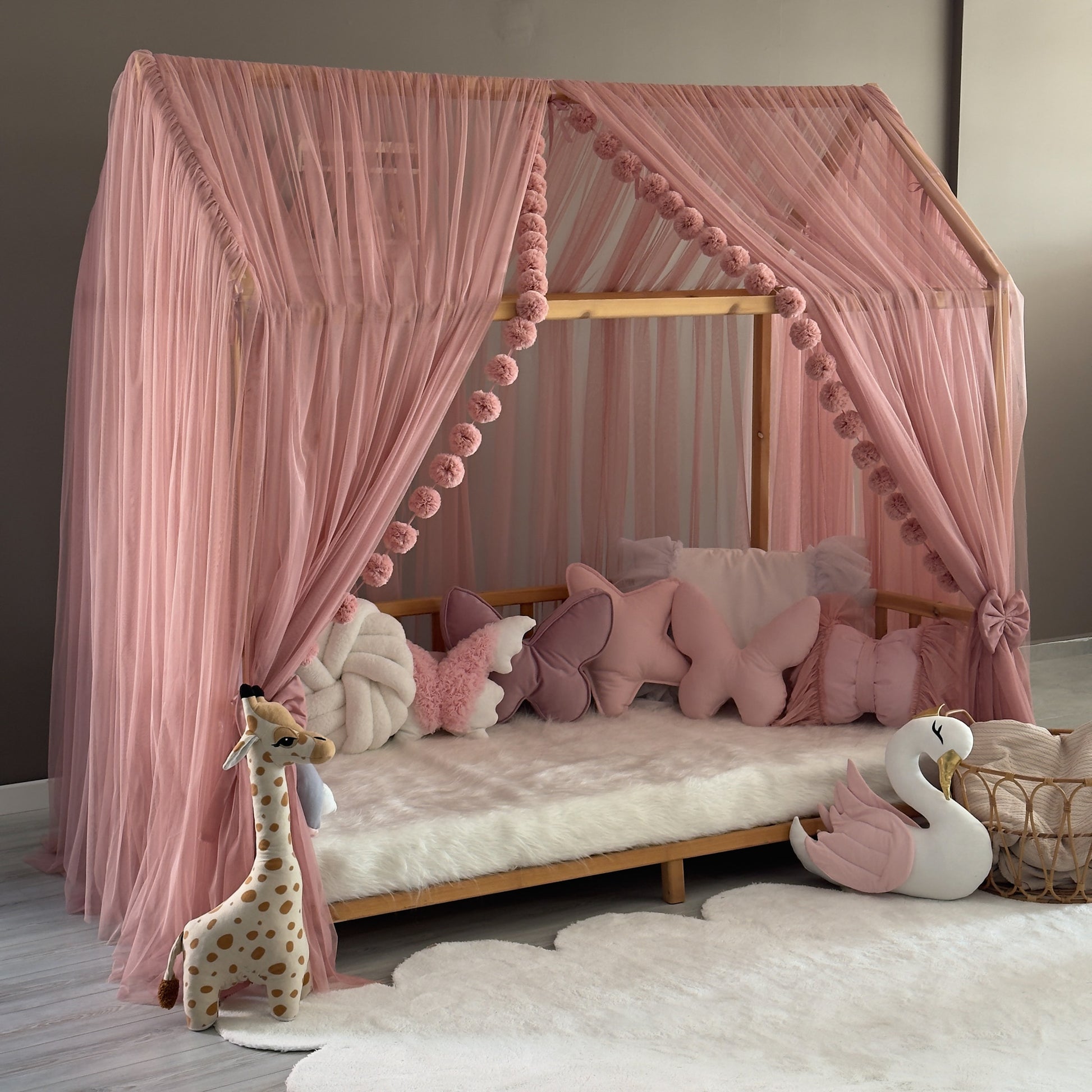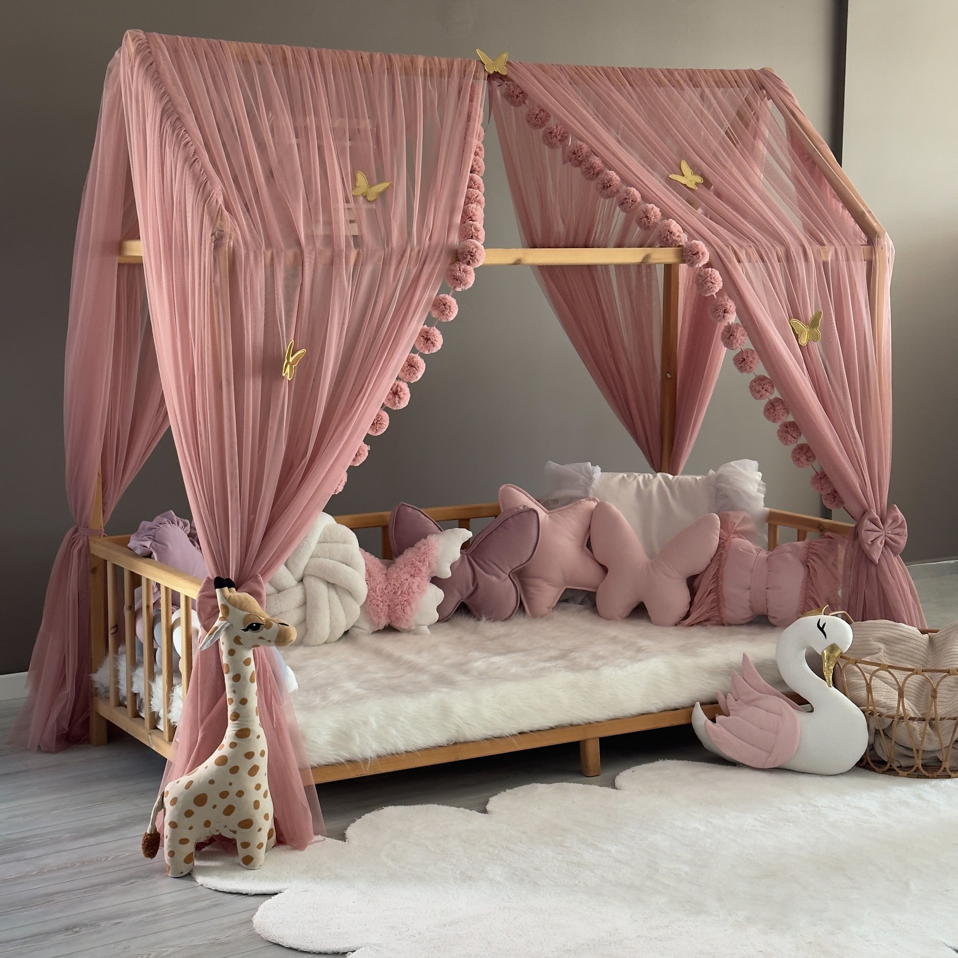 Çocuğunuzun odasını hem estetik açıdan göz alıcı hem de güvenli bir alana dönüştürün! Montessori yataklara özel olarak tasarlanan cibinliklerimiz, verdiğiniz ölçülere göre tamamen kişiye özel olarak üretilmektedir. %100 el işçiliğiyle hazırlanan bu cibinlikler, huzurlu bir uyku ortamı sağlarken odaya masalsı bir dokunuş katıyor.