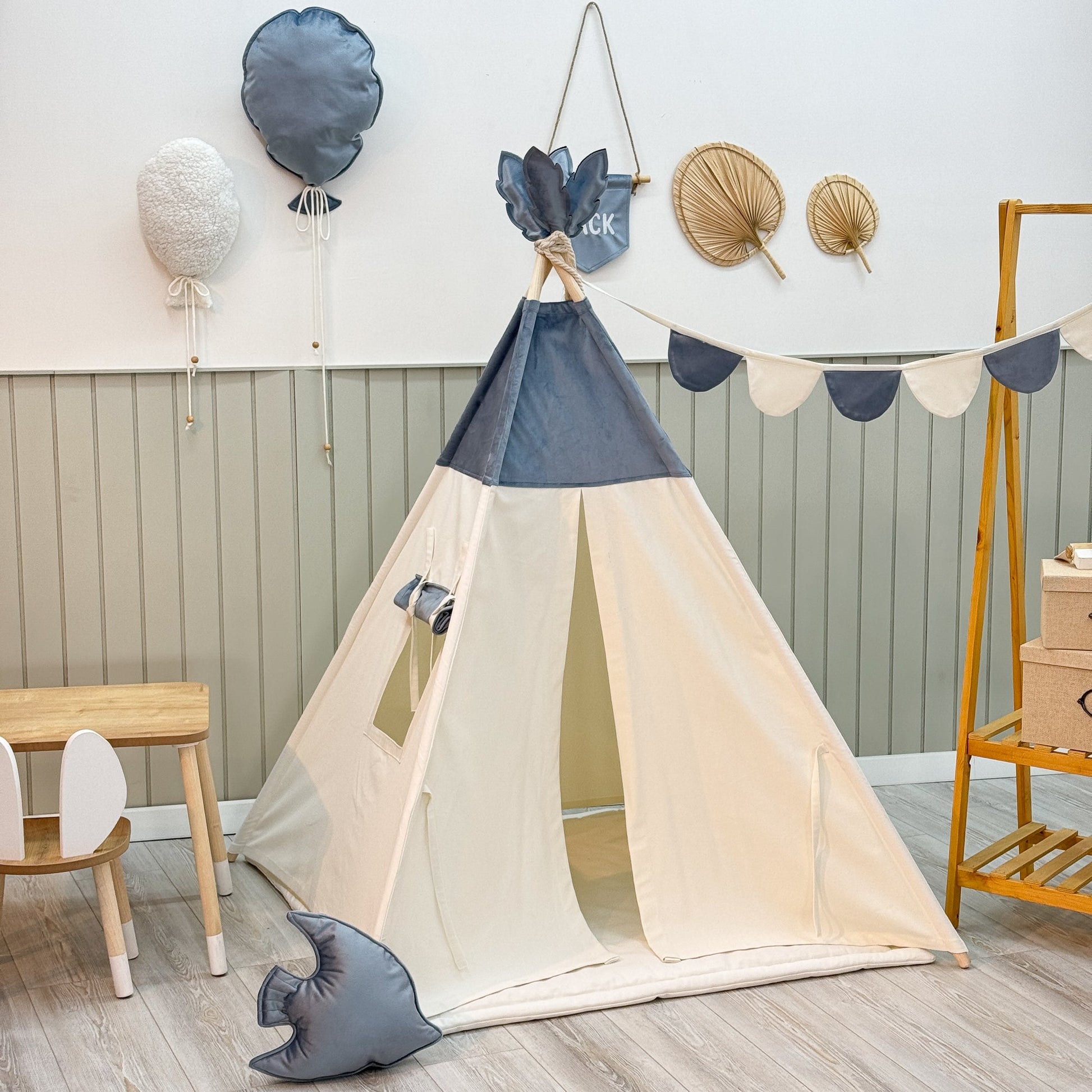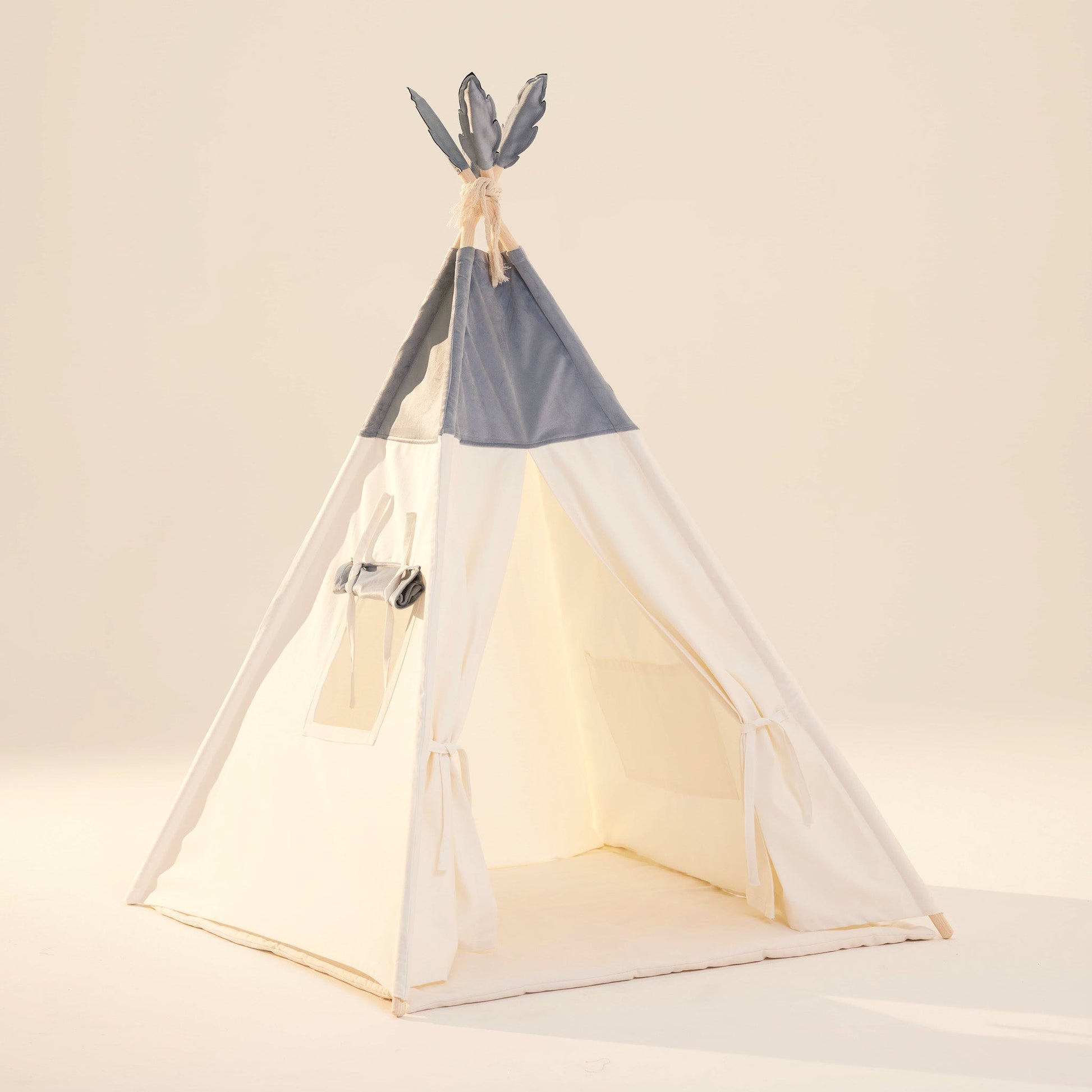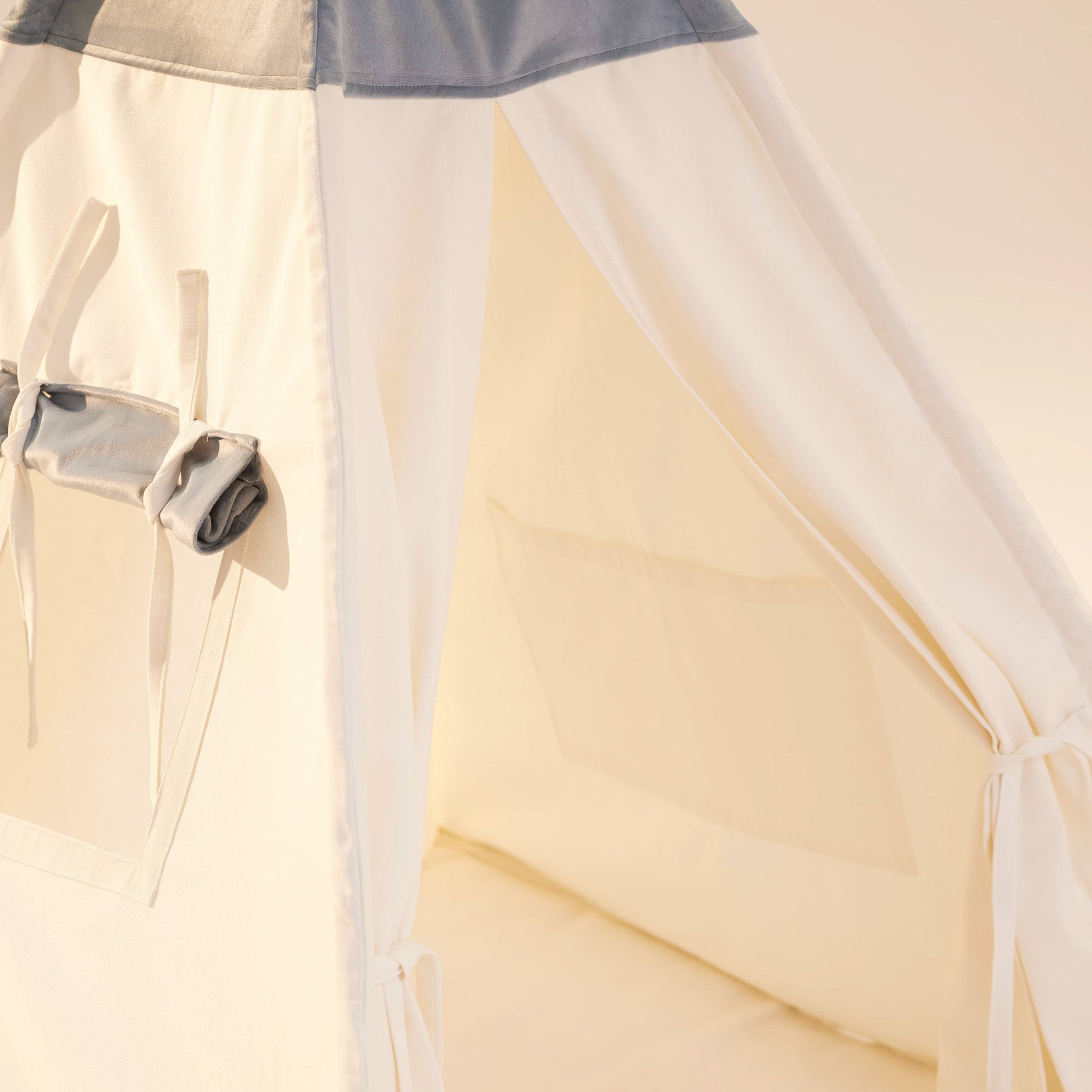 Doğal ahşap direklerle tasarlanmış bu oyun çadırlarımız, %100 nefes alabilen pamuk kumaşıyla çocuklar için hayal gücünü destekleyen harika bir oyun alanı sunar.