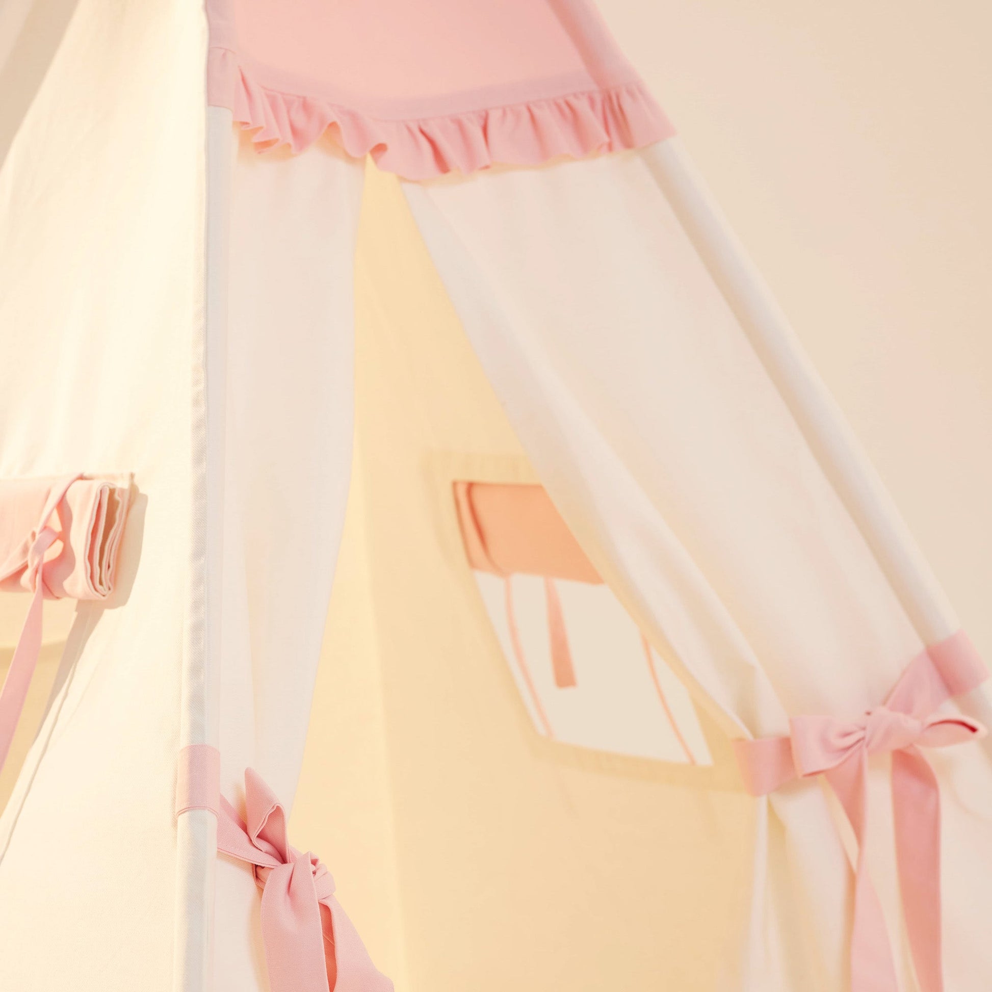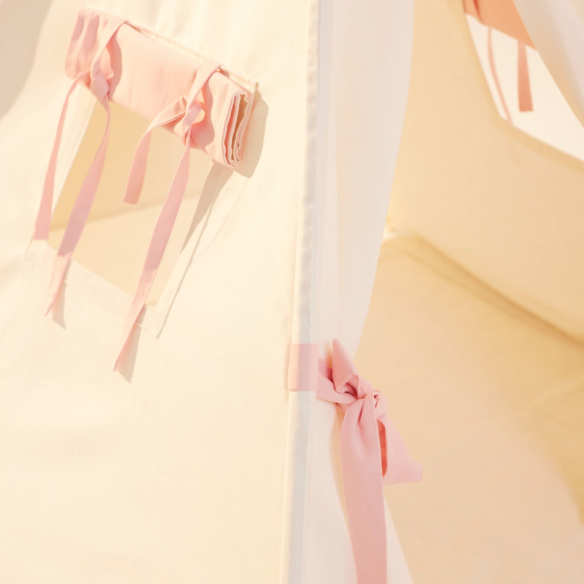 Doğal ahşap direklerle tasarlanmış bu oyun çadırlarımız, %100 nefes alabilen pamuk kumaşıyla çocuklar için hayal gücünü destekleyen harika bir oyun alanı sunar.