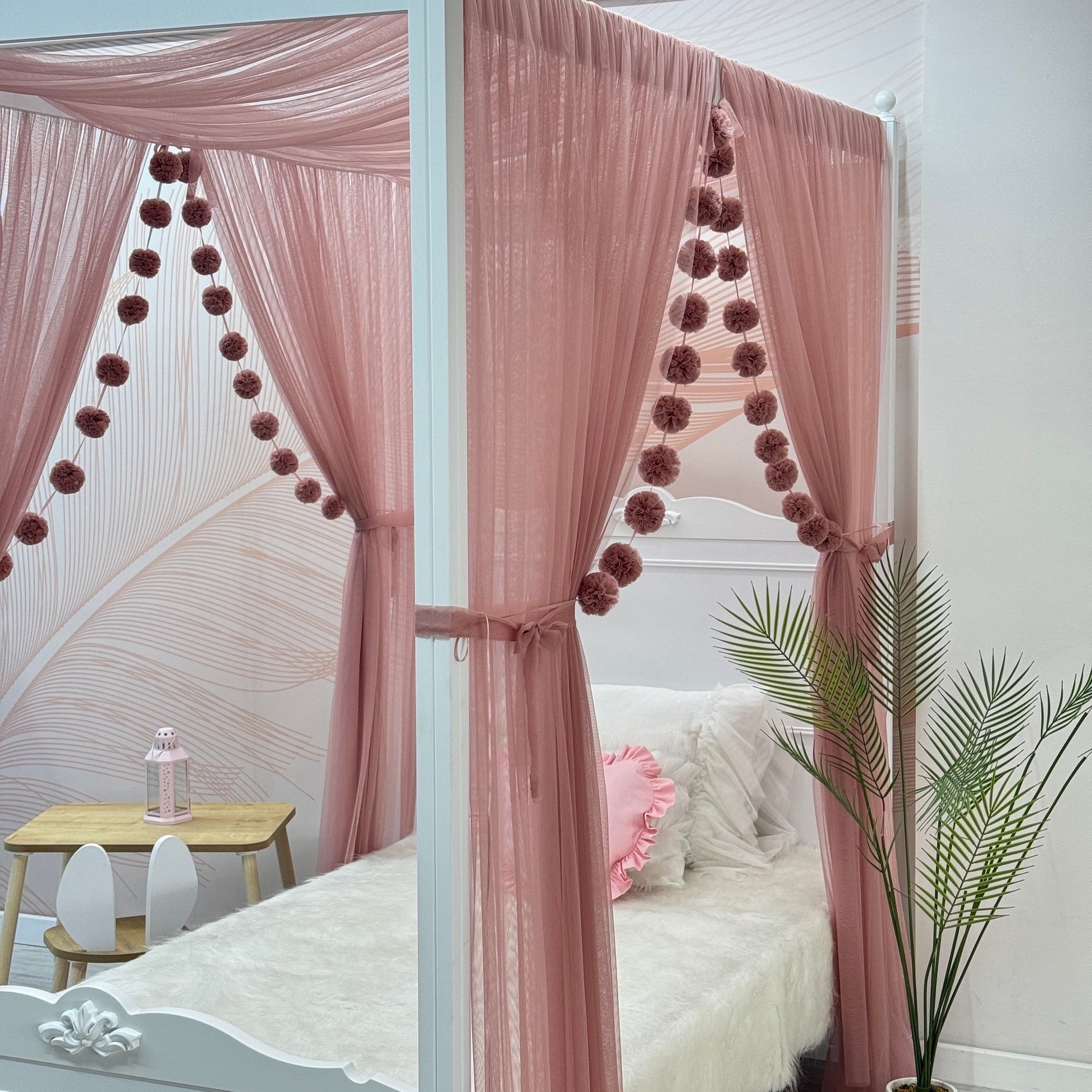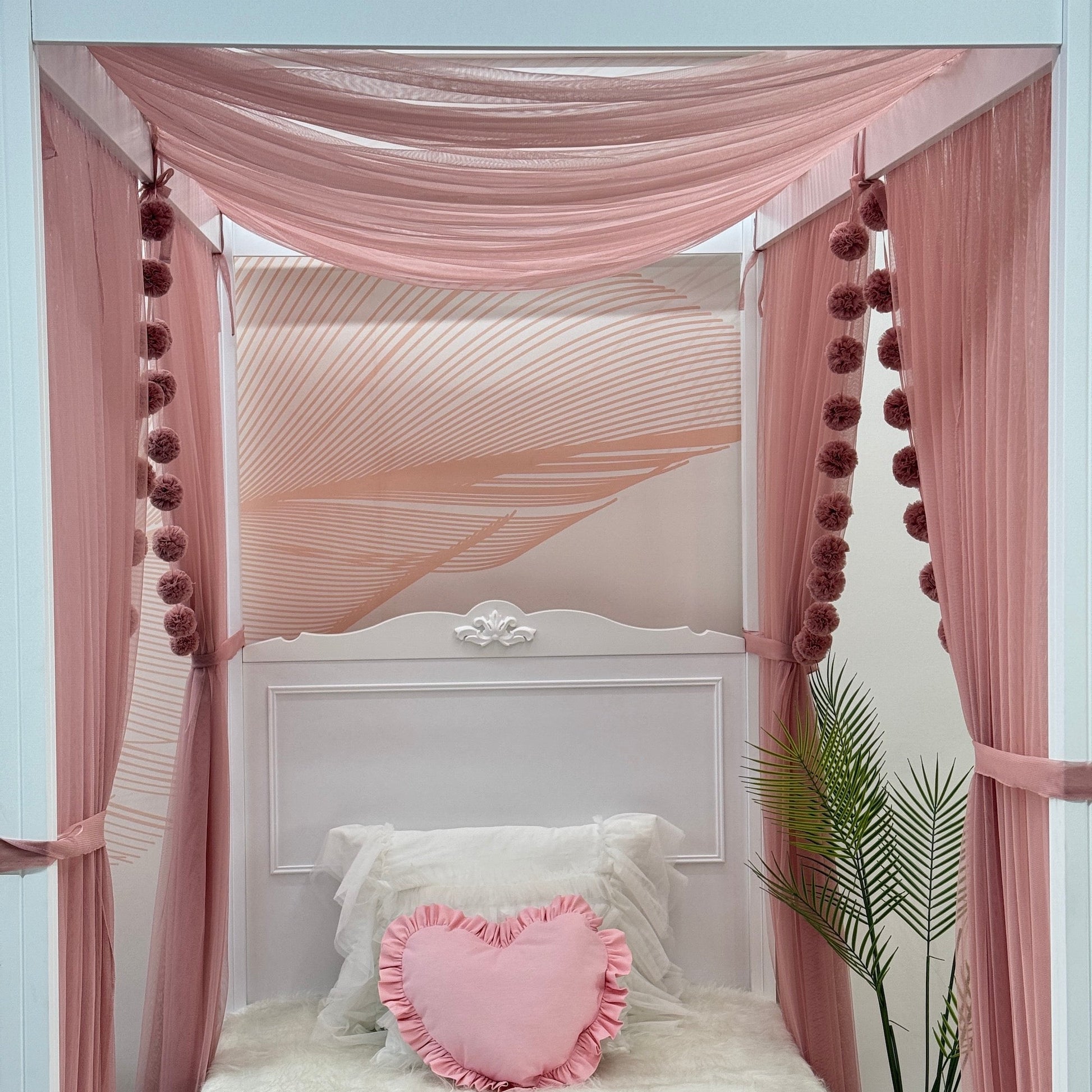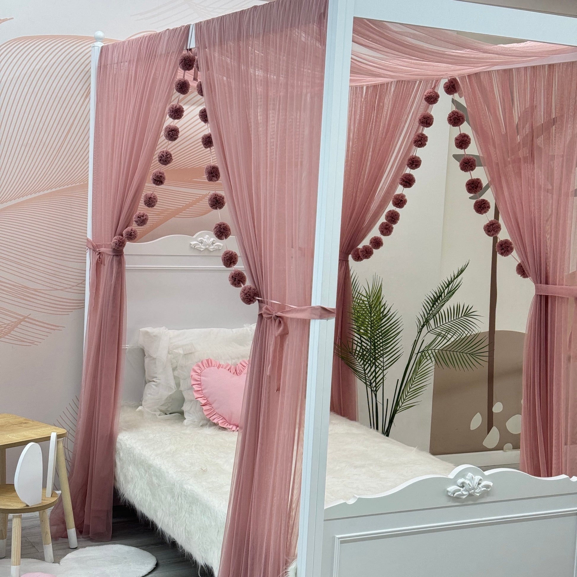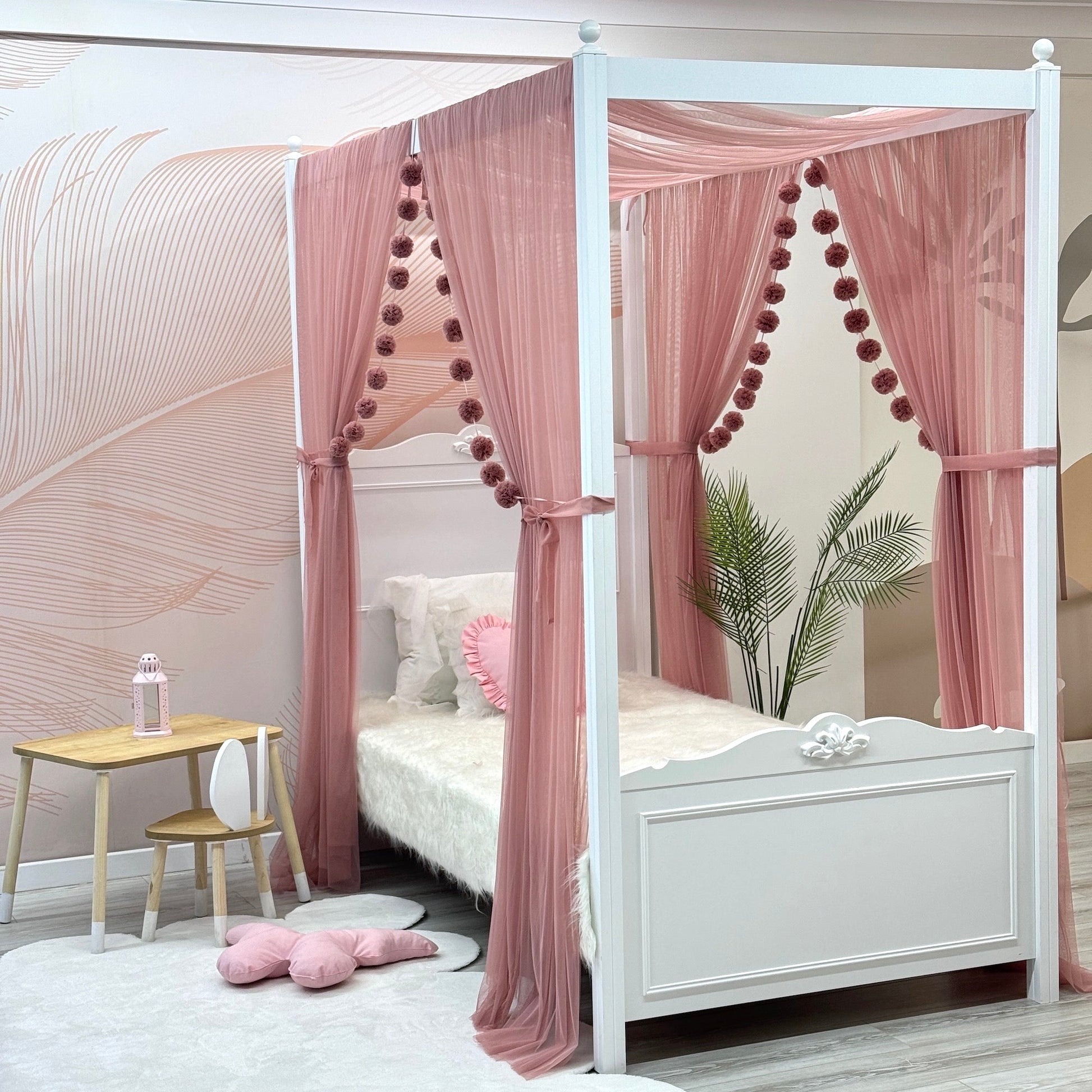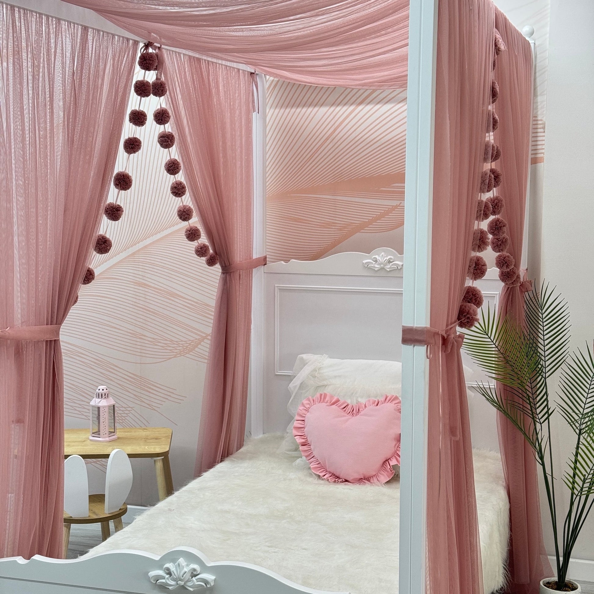 Ready to transform your child’s poster bed into a fairy-tale corner? Our canopies for poster beds are specially designed for four-poster frames, adding both protection and a decorative charm to the room. Made from lightweight, breathable tulle fabric, these custom canopies create a cozy and visually enchanting sleep space for your child.