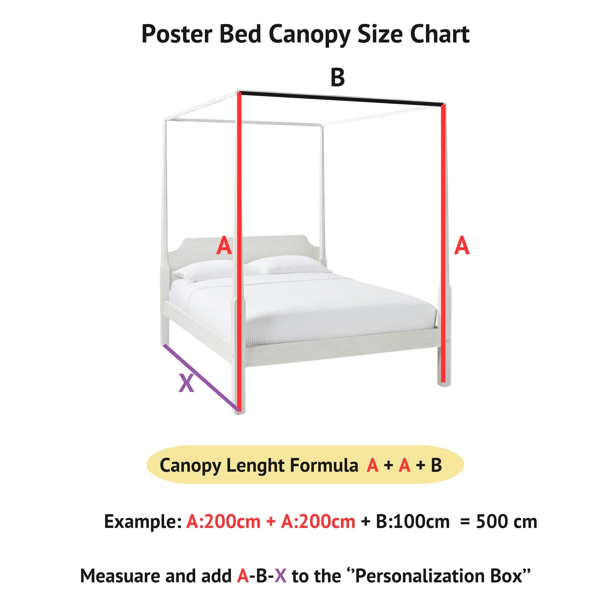 Each canopy is custom-made to fit the exact dimensions of your poster bed, based on the measurements you provide. This ensures a perfect fit—no sagging or slipping.