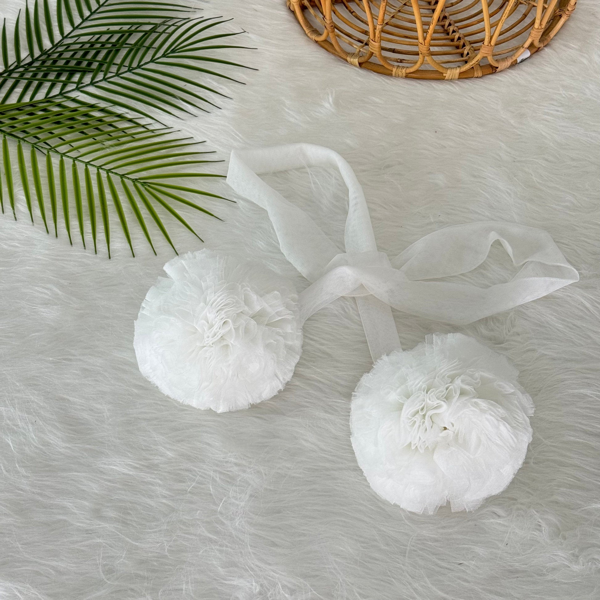 İkili Ponpon - Beyaz